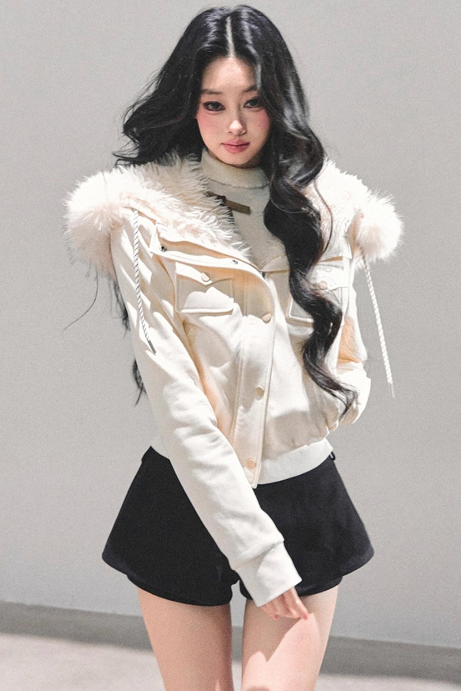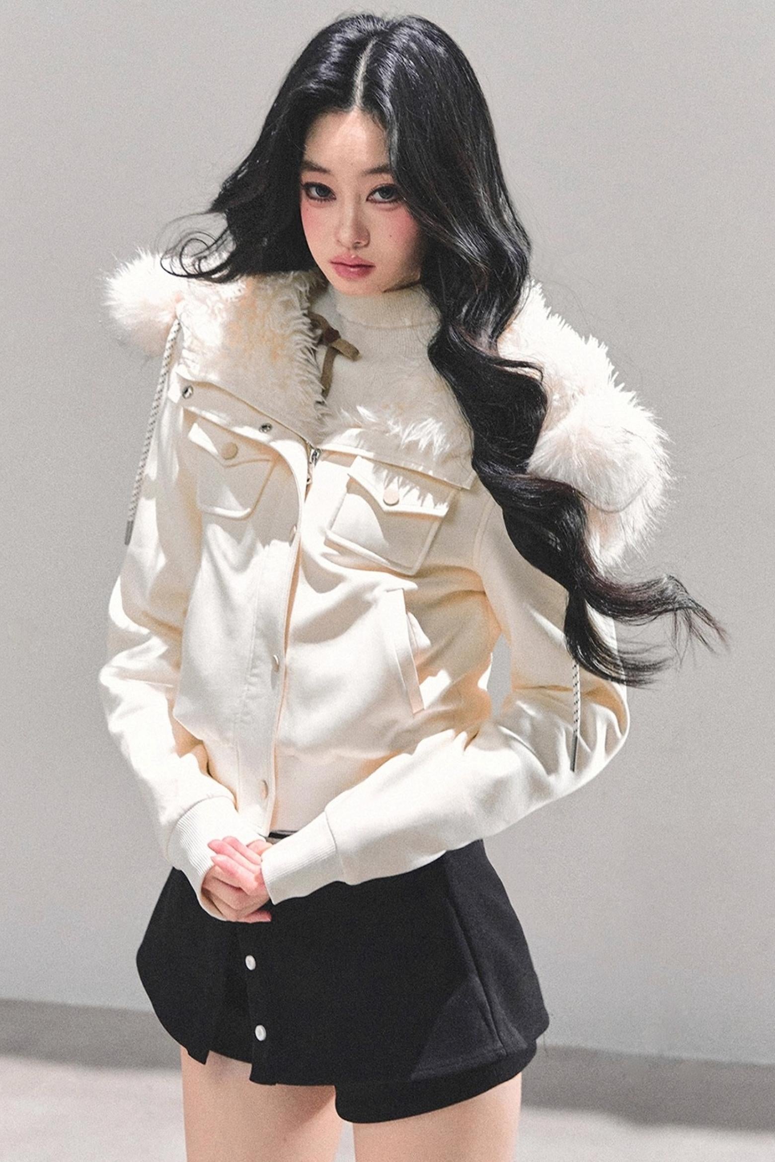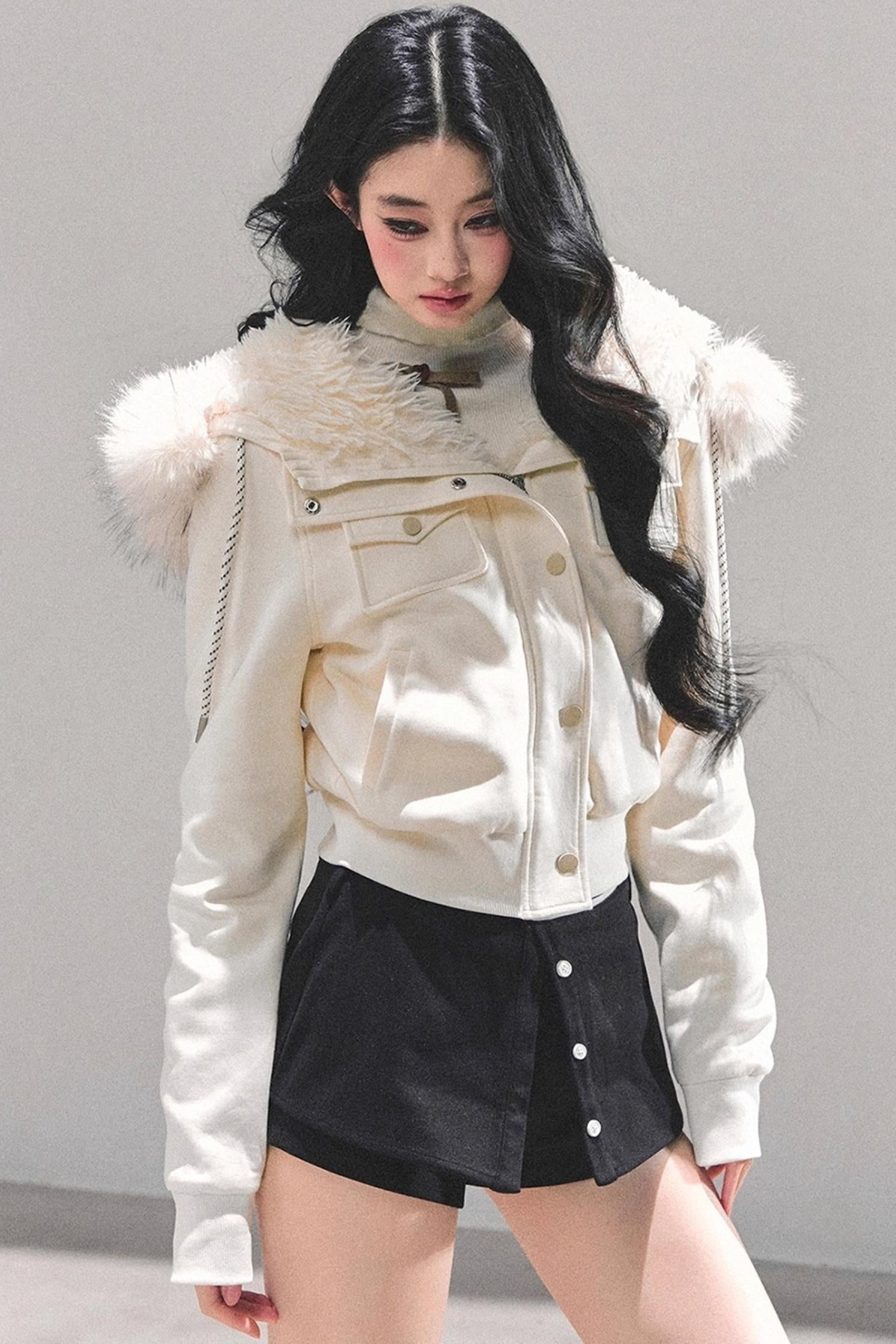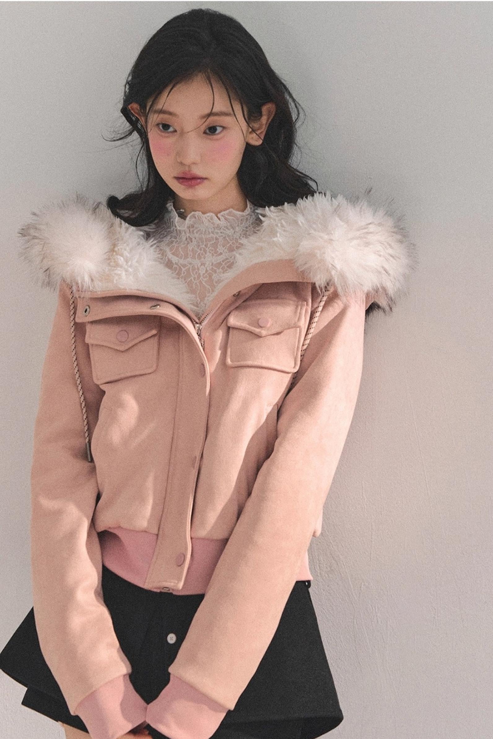Lamb Wool Hooded Winter Coat