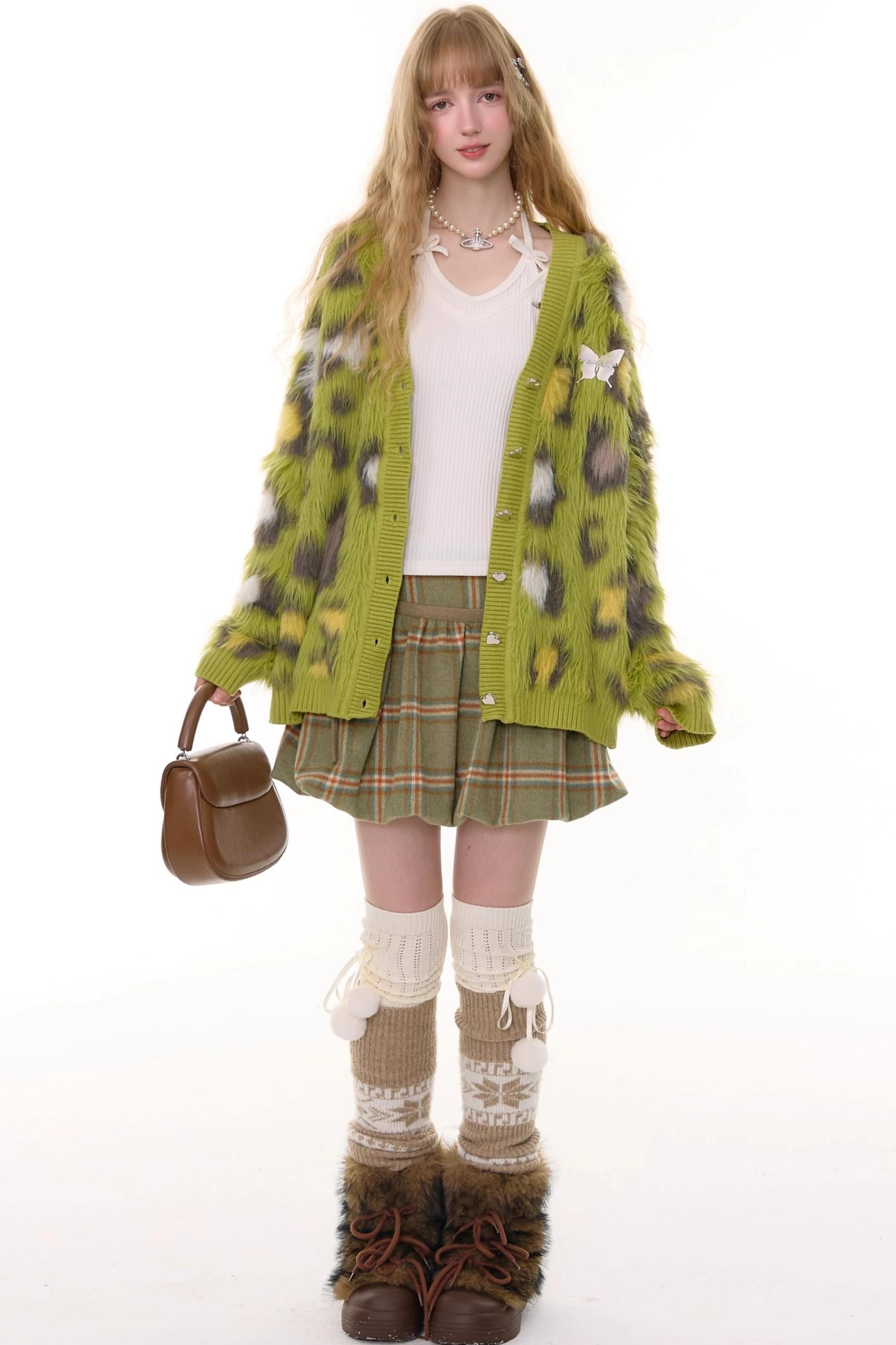 Autumn Glutinous Green Leopard Cardigan