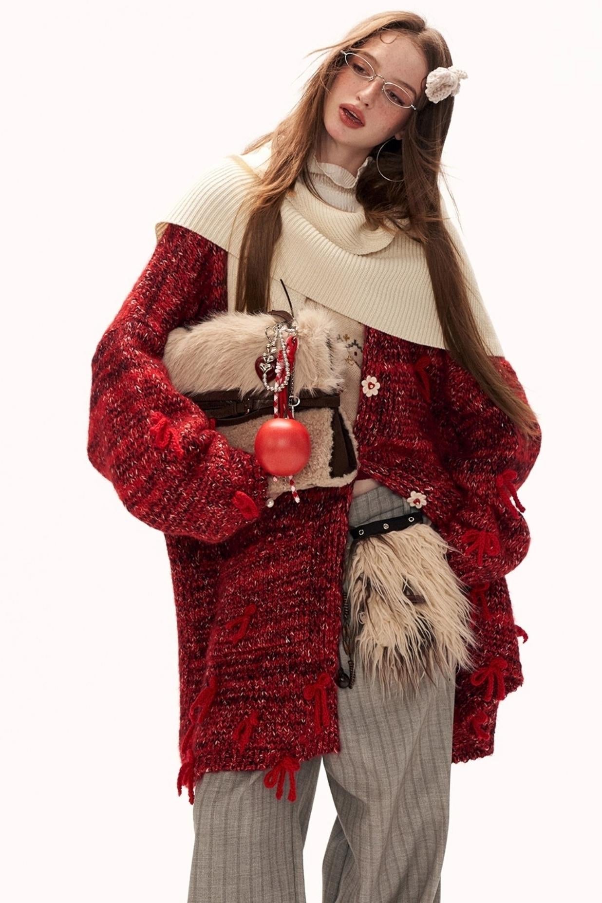 Bow Flower Knit Cardigan