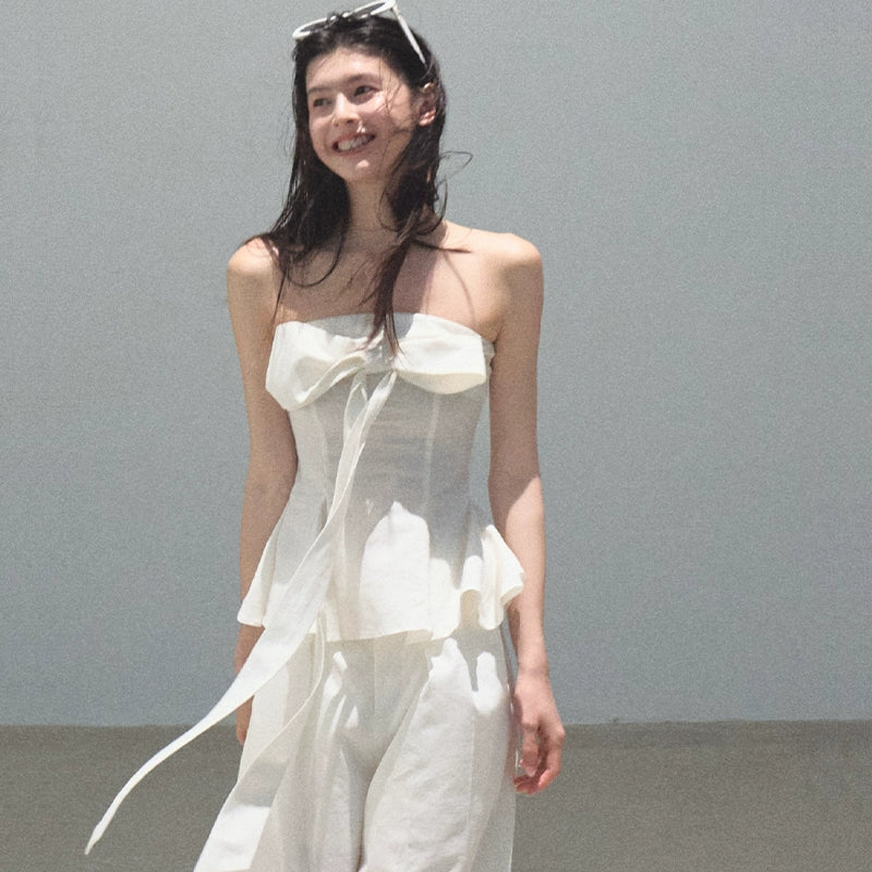 Eternal River Bandeau Top Wide-Leg Trousers Set-Up