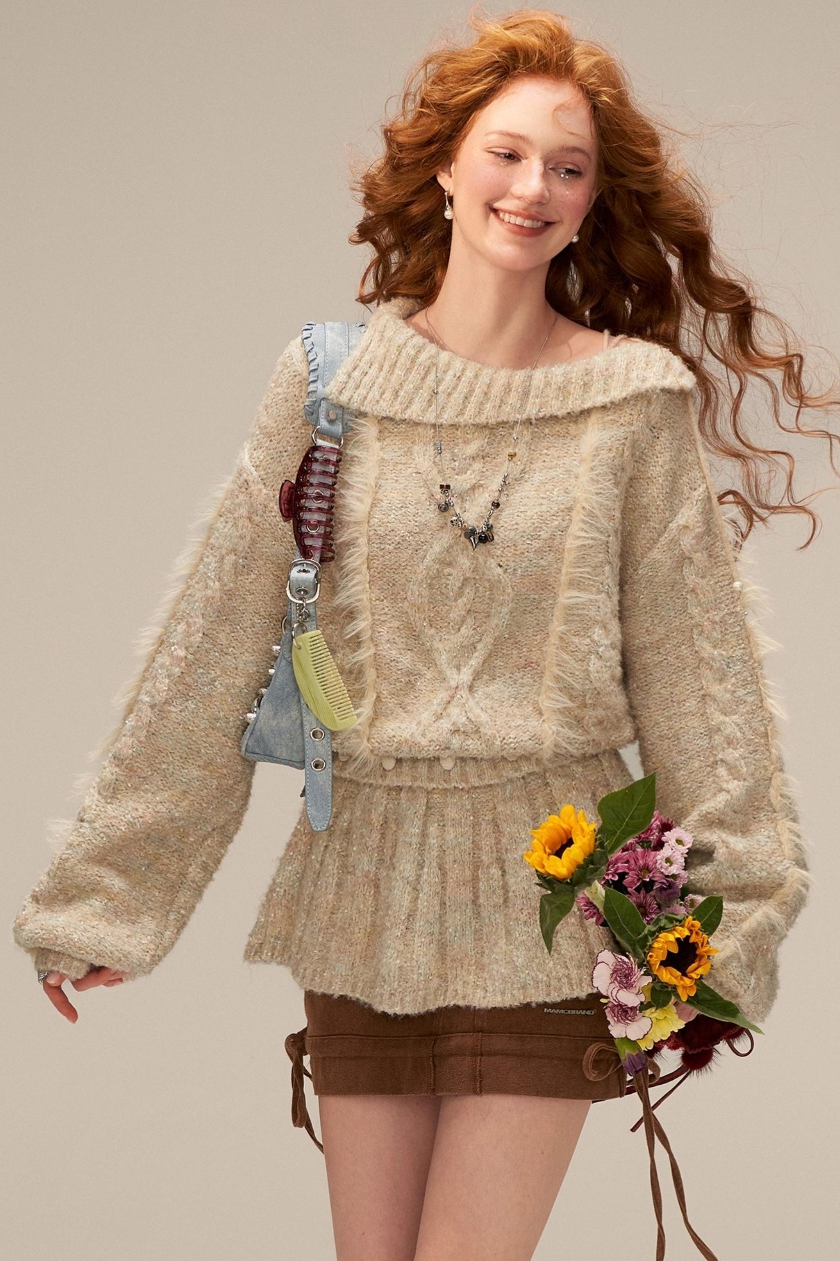 Lapel Tie Waist-Cinching Knit Sweater