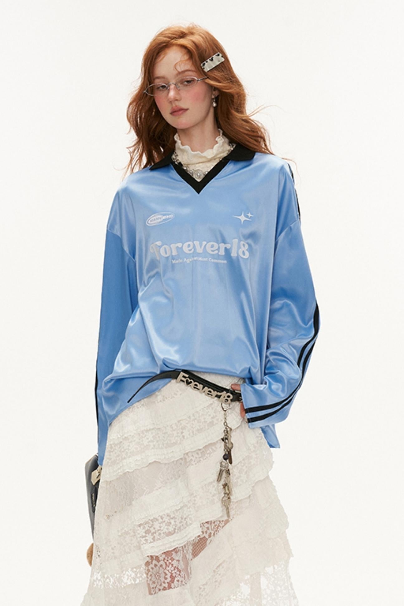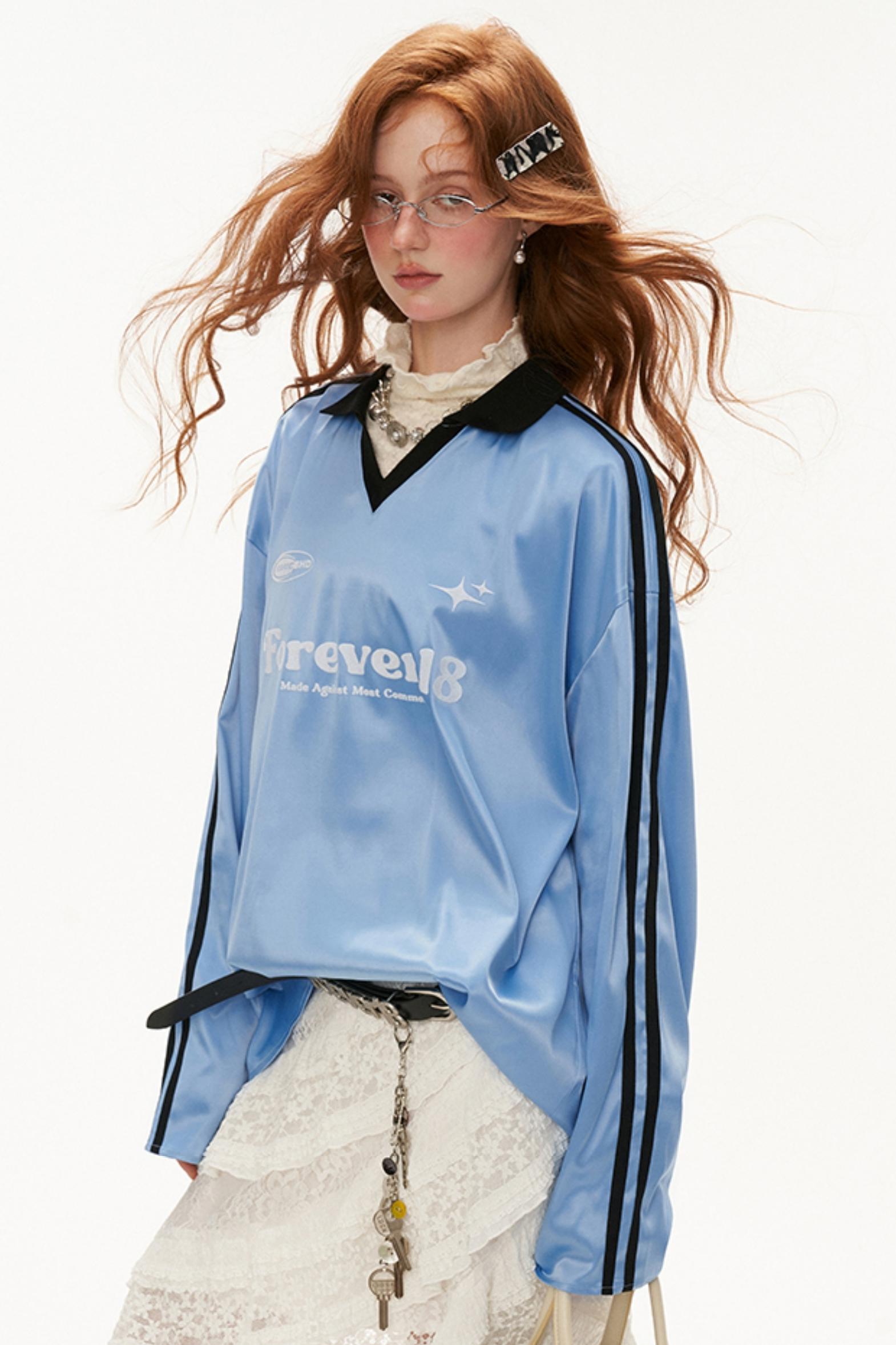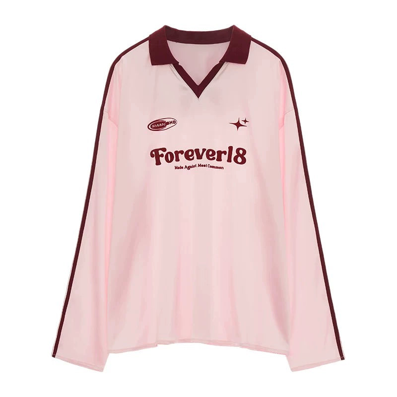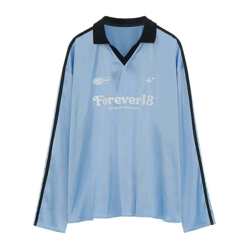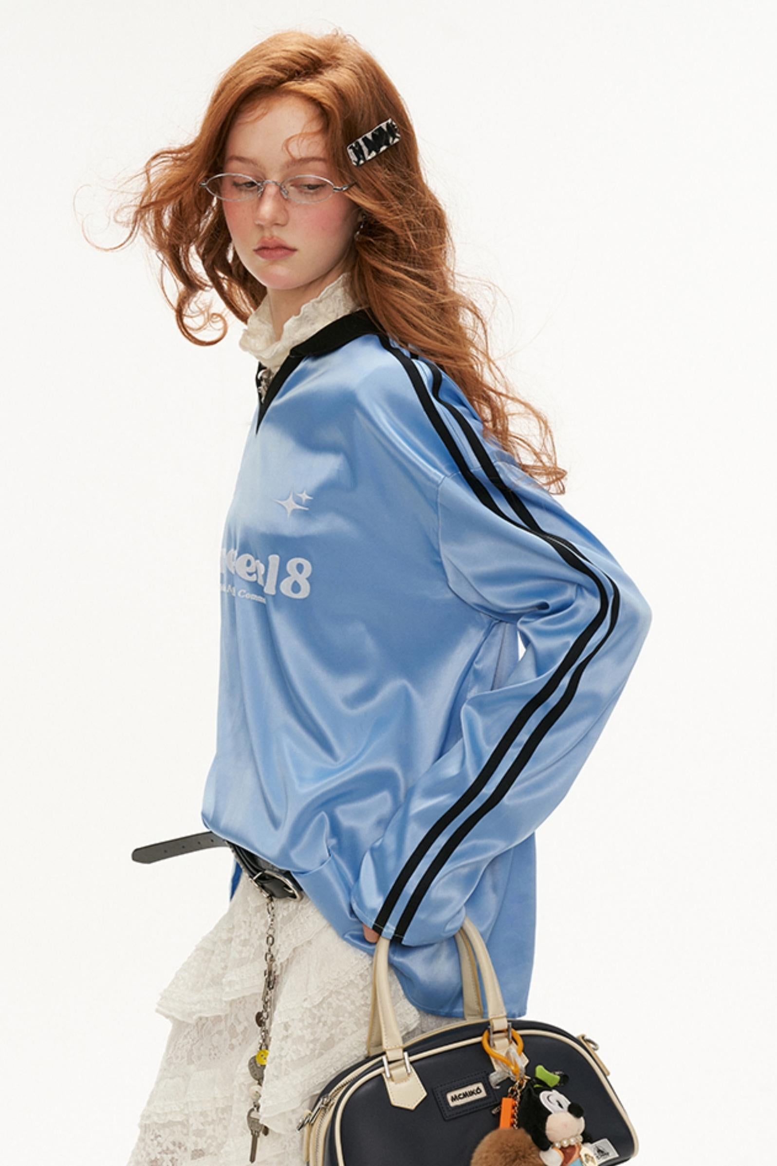Loose Striped Polo Jersey T-Shirt