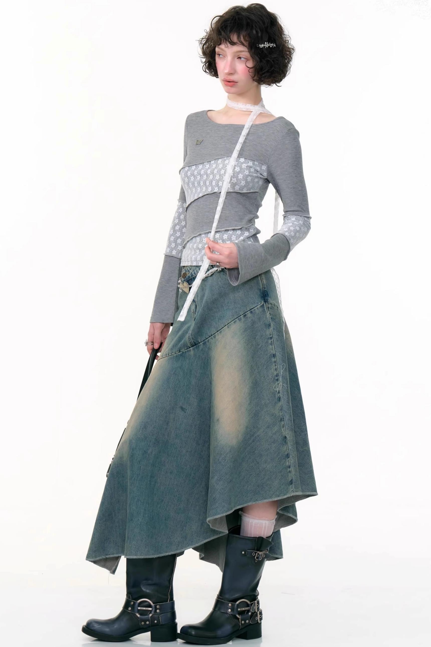 Twill Stitch Lace Knit Top