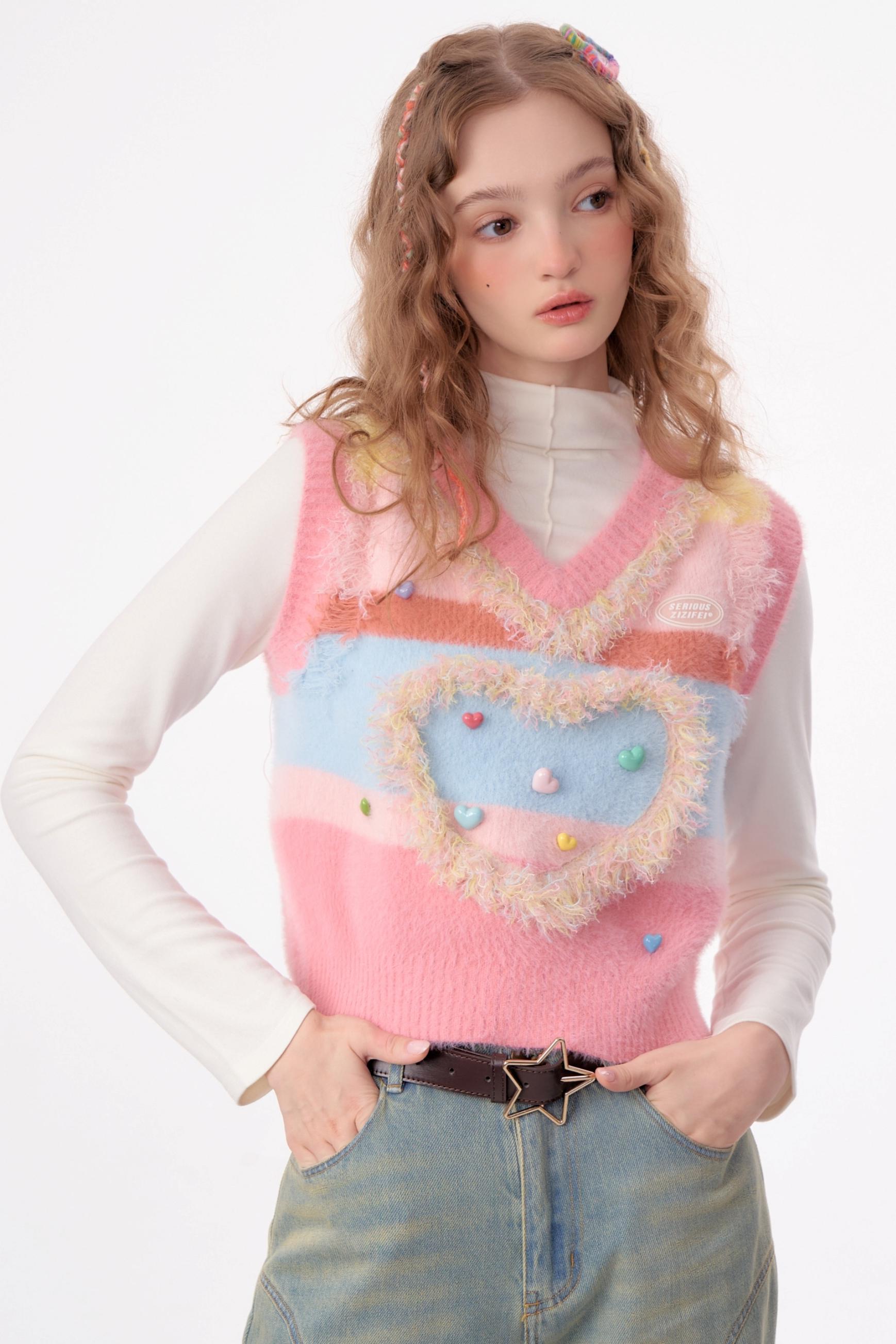Vintage Pink Knitted V-Neck Sweater Vest
